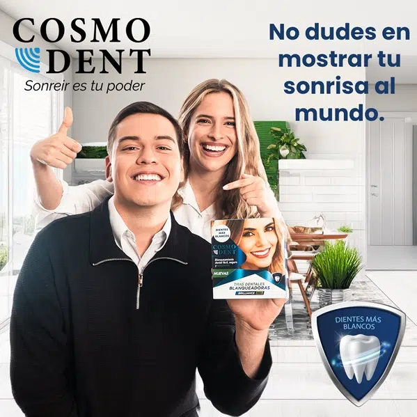 Las tiras blanqueadoras Cosmodent se adaptan perfectamente a tu sonrisa, son fáciles de aplicar y su fórmula suave es segura para tus dientes y encías.